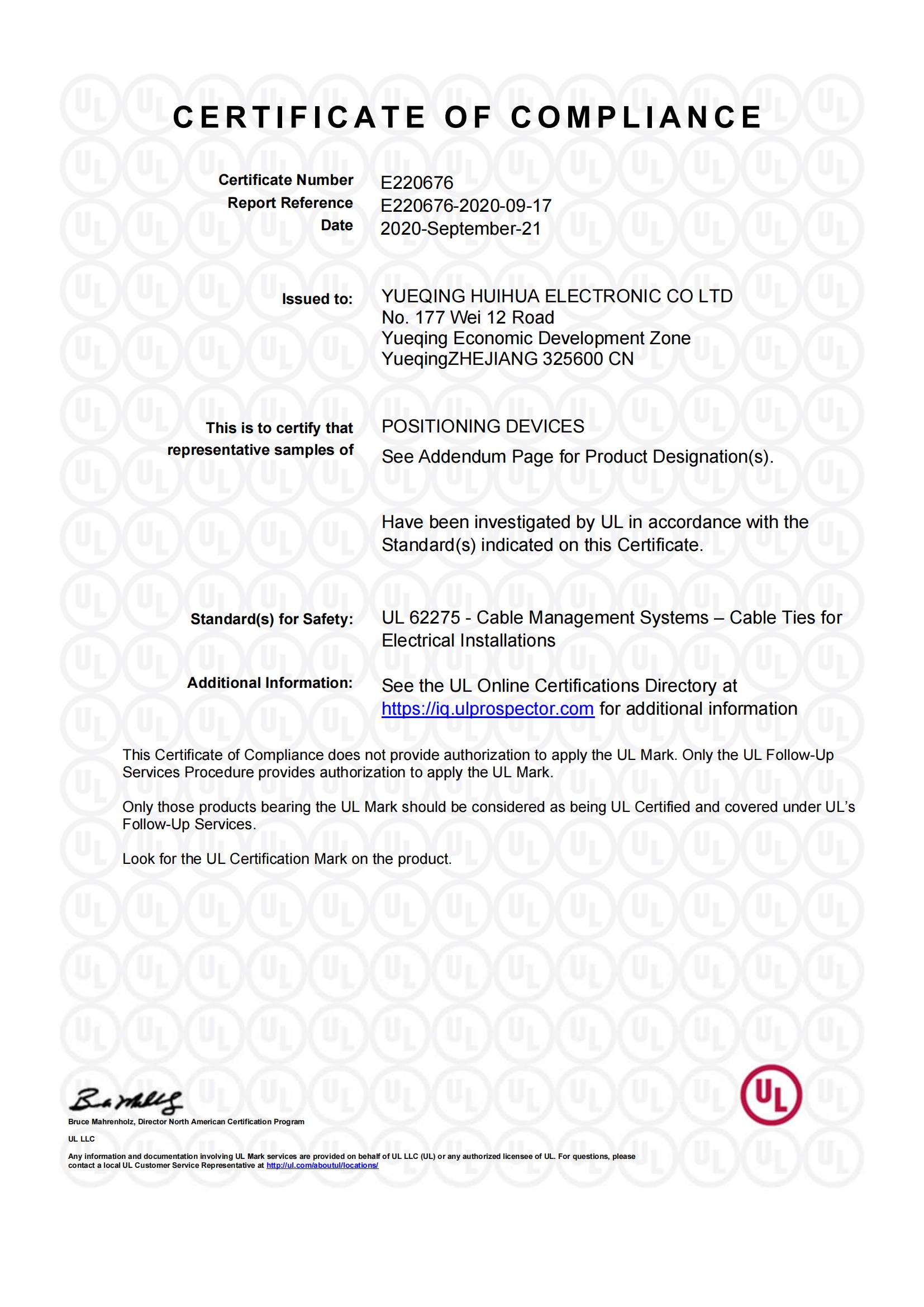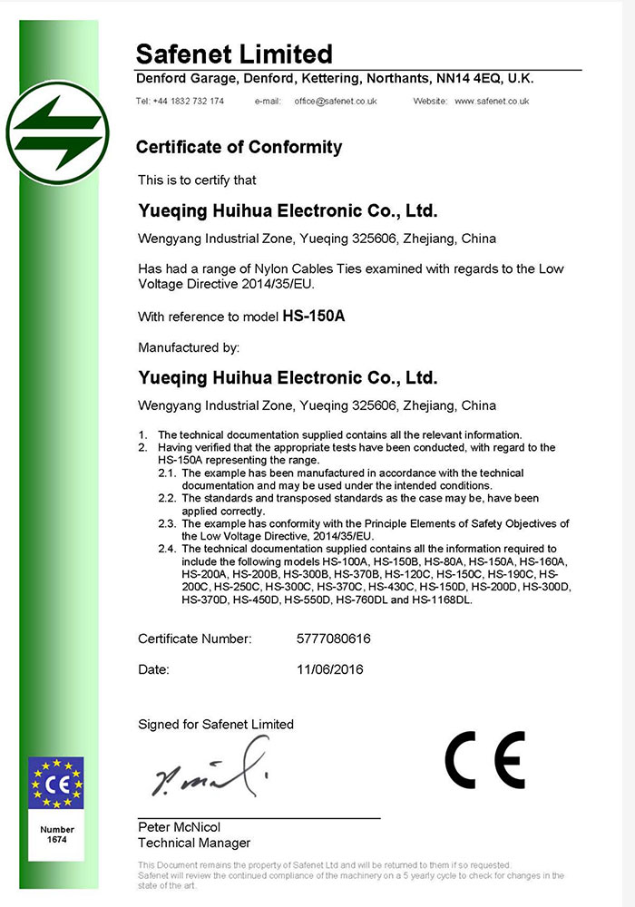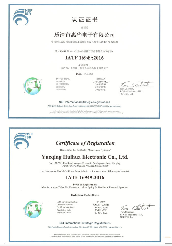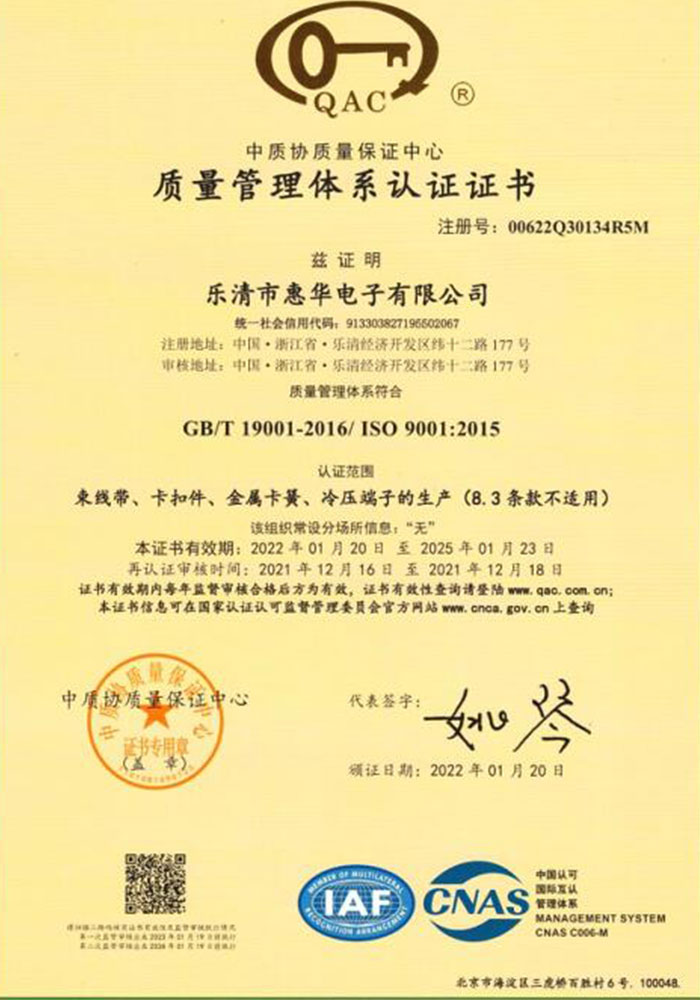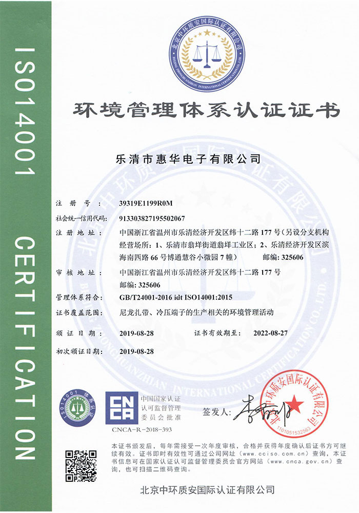 樂清市惠華電子有限公司是一家專業(yè)生產(chǎn)尼龍扎帶、固線夾、壓線帽等配線零部件的工廠;公司實行ISO9001質(zhì)量管理體系,